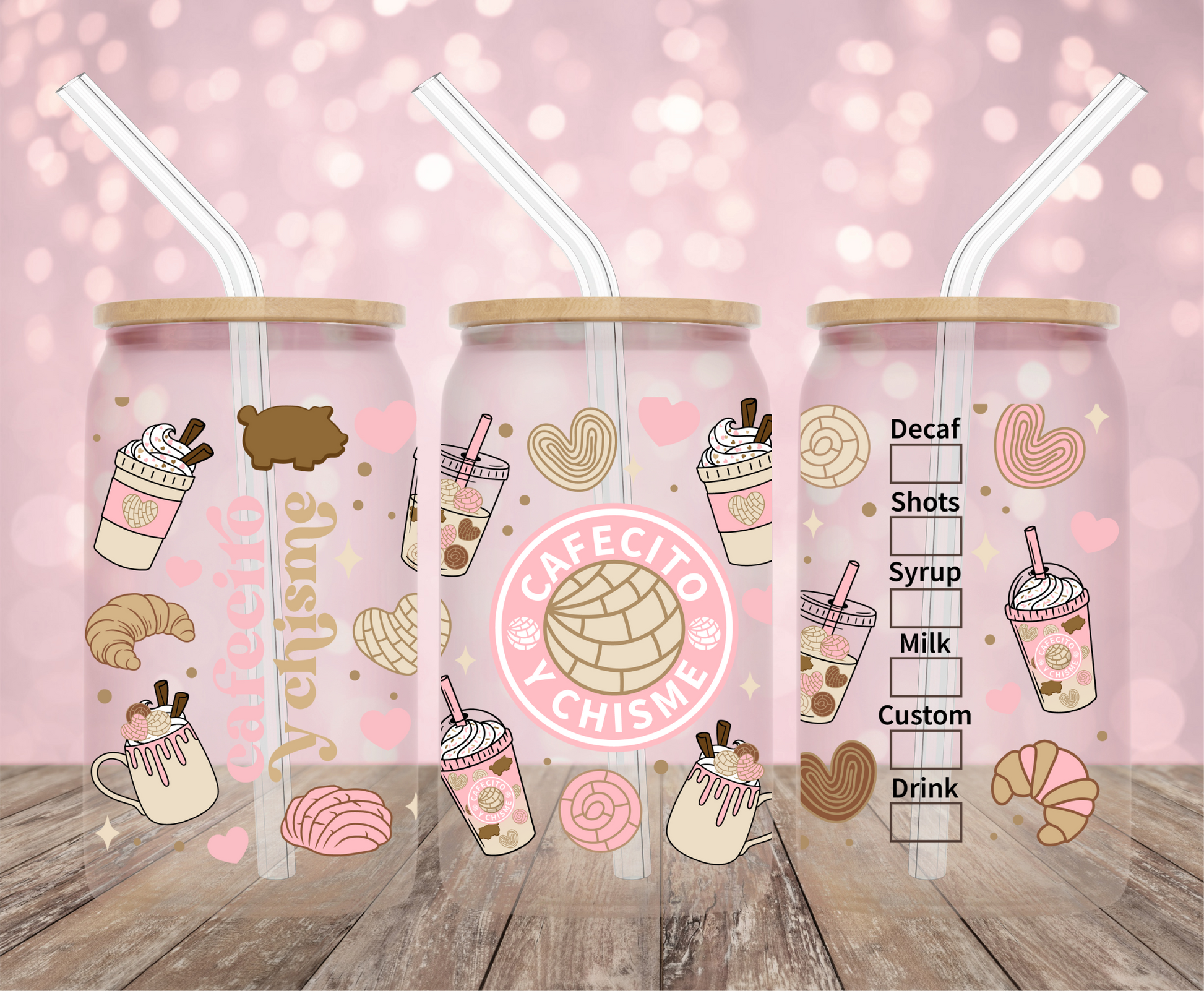 This listing is for one (1) UV DTF adhesive cup wrap for a 16oz Glass Cup size. (cup is not included)