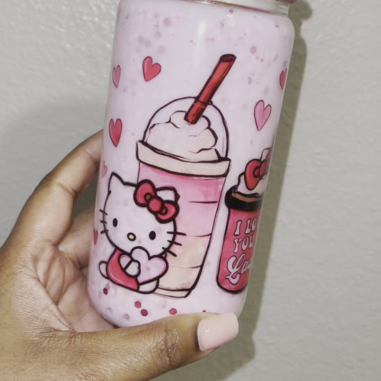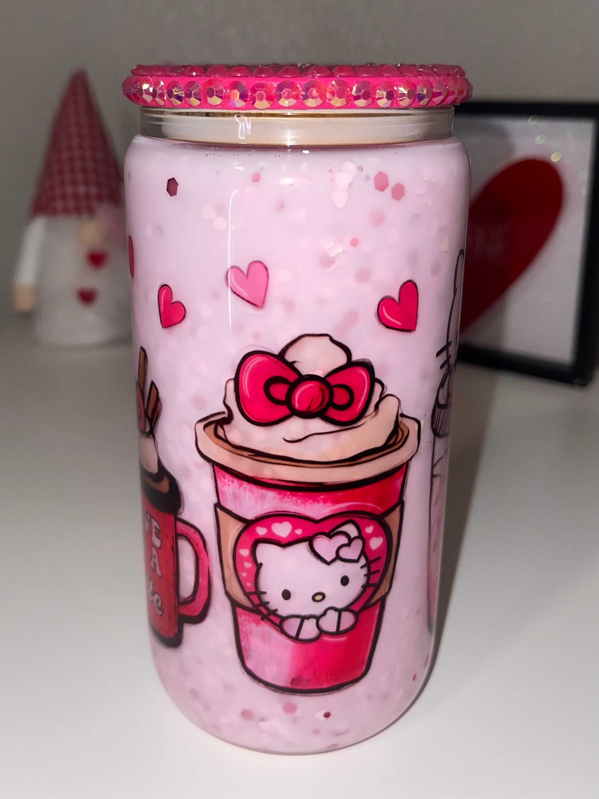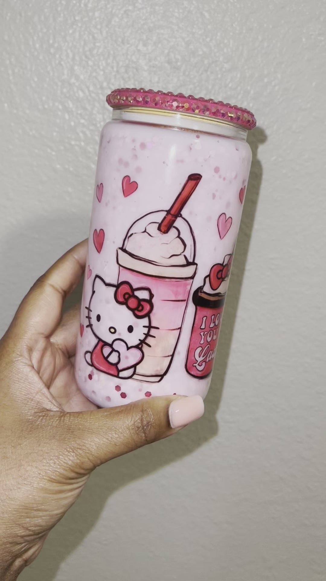 -Kitty design as shown, Pink hearts and magenta pink glitter