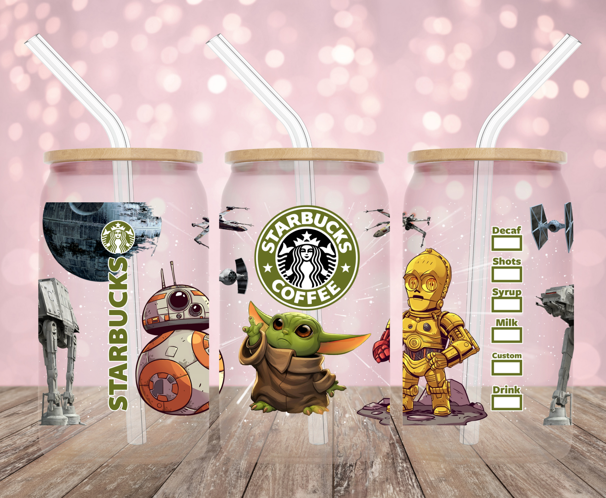 This listing is for one (1) UV DTF adhesive cup wrap for a 16oz Glass Cup size (Cup is not included).